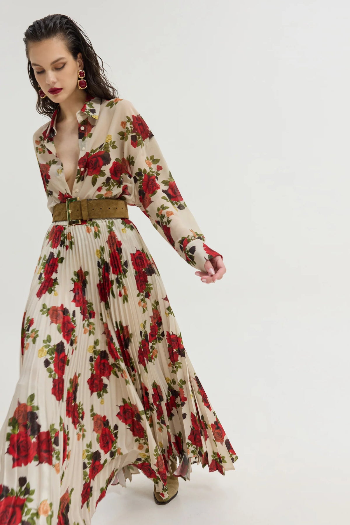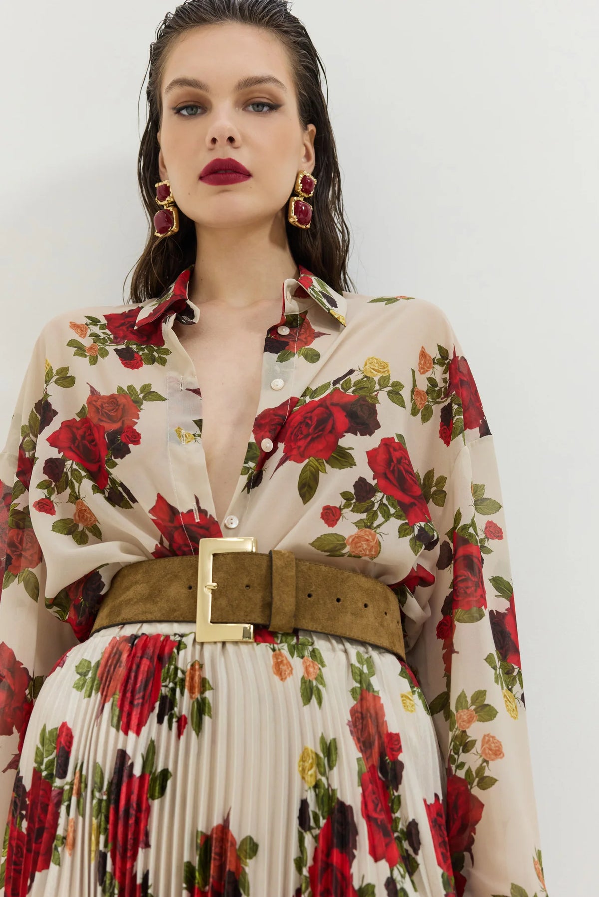 • Oversized sleeves with two buttons at the cuff