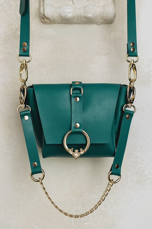 Handcrafted leather small shoulder bag with nickel or gold metal details. Comes with double strap, one leather adjustable strap and one which combines leather with chain.