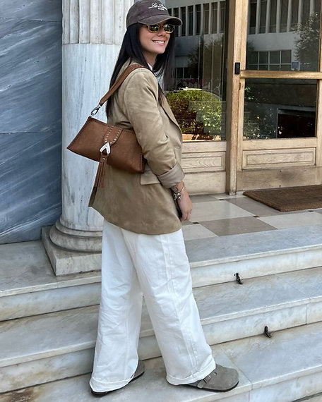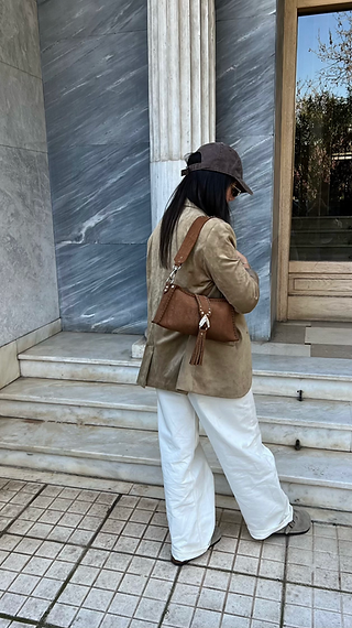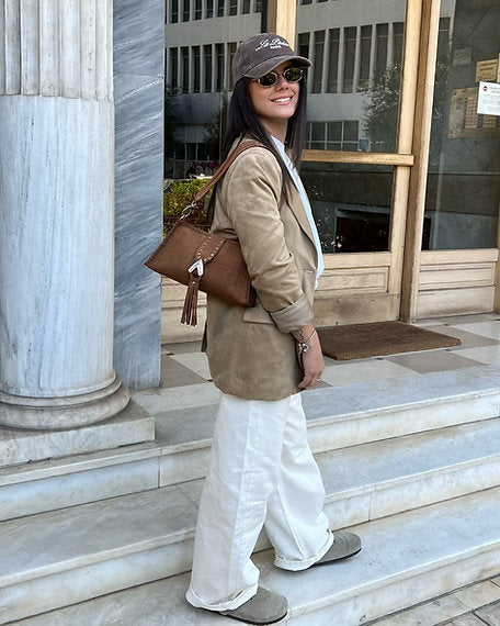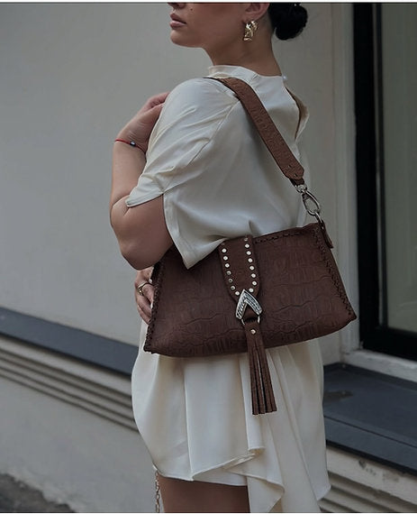 "I am love" shoulder bag, chocolate suede