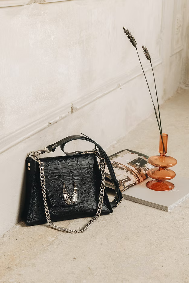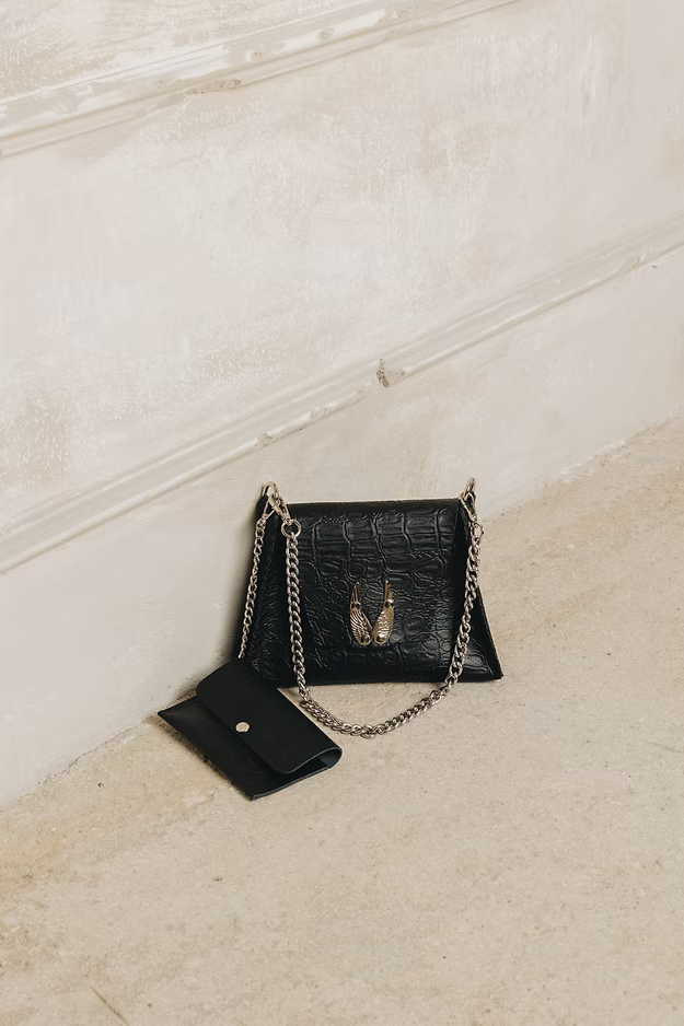 "Wings" shoulder bag, smaller size black nickel