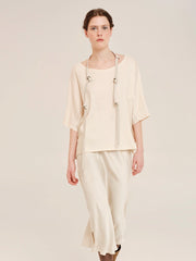 A midi skirt crafted from soft, fluffy fabric, elegantly finished with subtle satin detailing at the hem. The elasticated waistband offers all-day comfort and an easy fit, while the tailored cut allows for graceful, flowing movement. A truly feminine and refined design that strikes the perfect balance between casual chic and prêt-à-porter deluxe style.